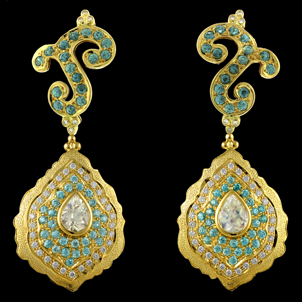 18K yellow gold with Diamond, Zircon, Moonstone.