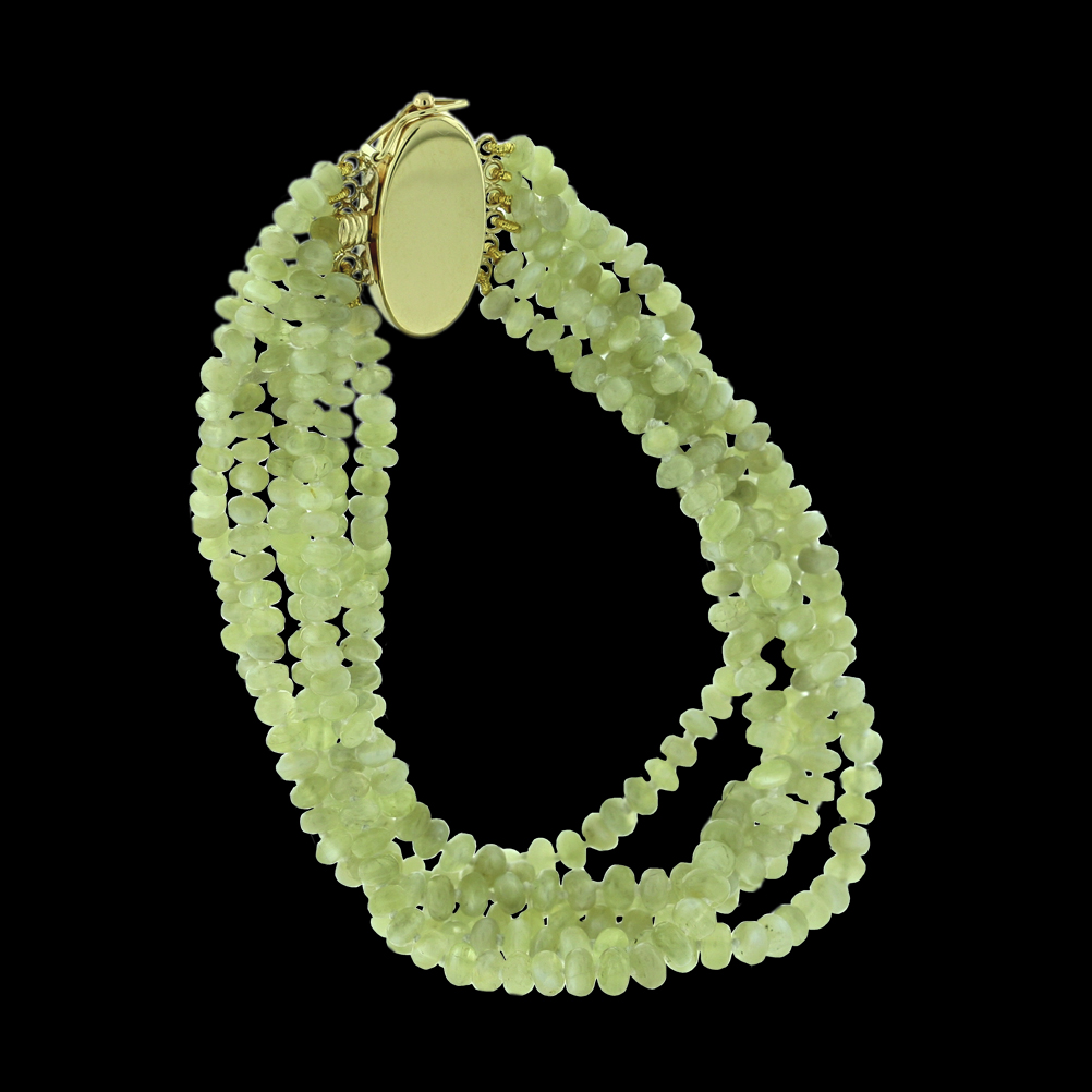 Five Strand very rare Chrysoberyl Cats Eye Bead Bracelet with a 14K clasp.