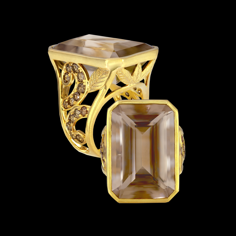 18K yellow gold with.Smoky Quartz and? Diamond.
