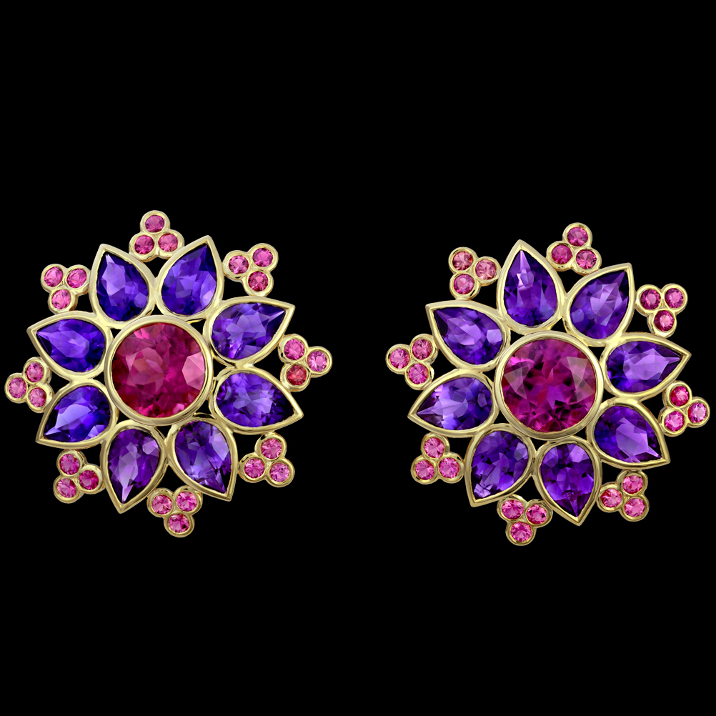 18K yellow gold with Tourmaline and Amethyst.