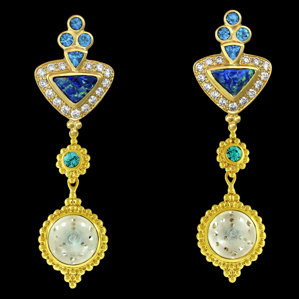 18K yellow gold with Opal, Diamond, Apatite, Quartz and Zircon.